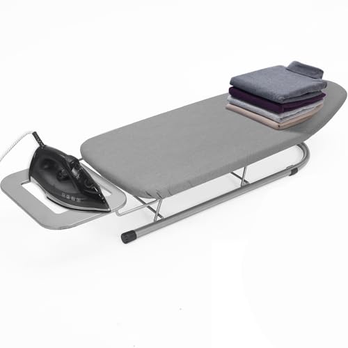 XABITAT D-Crease Planche à Repasser de Table avec Support Mural, Mini Planche à Repasser Pliable et Portable pour économiser de l'espace, avec Support de Fer, Gris