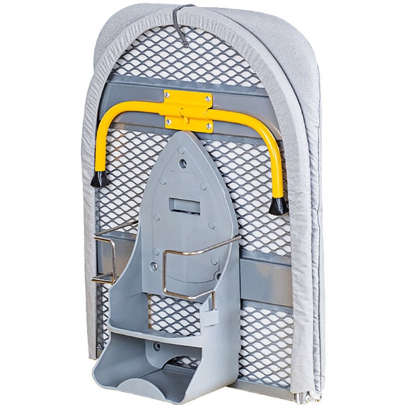 Pocket Planche à repasser pliante 89x 33 cm avec Housse en Coton 100%, Rangement Compacte, Table Peu Encombrante, Porte-Fer Intégré, Gris/Jaune