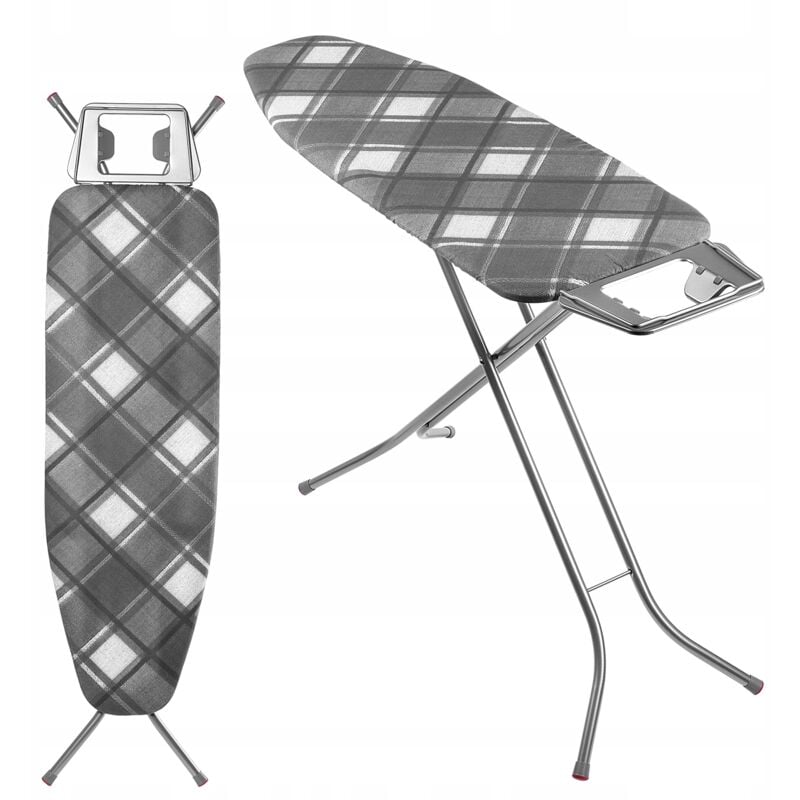 Table à Repasser 120 x 38 cm, Planche Pliable avec Housse en Coton, Support de Fer Intégré, Pieds Antidérapants et Reglable Hauteur (Carreaux) - Kadax