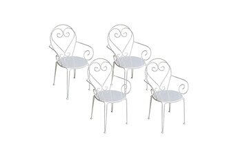 Mylia GUERMANTES Lot de 4 chaises de jardin empilables en métal façon fer forgé blanc