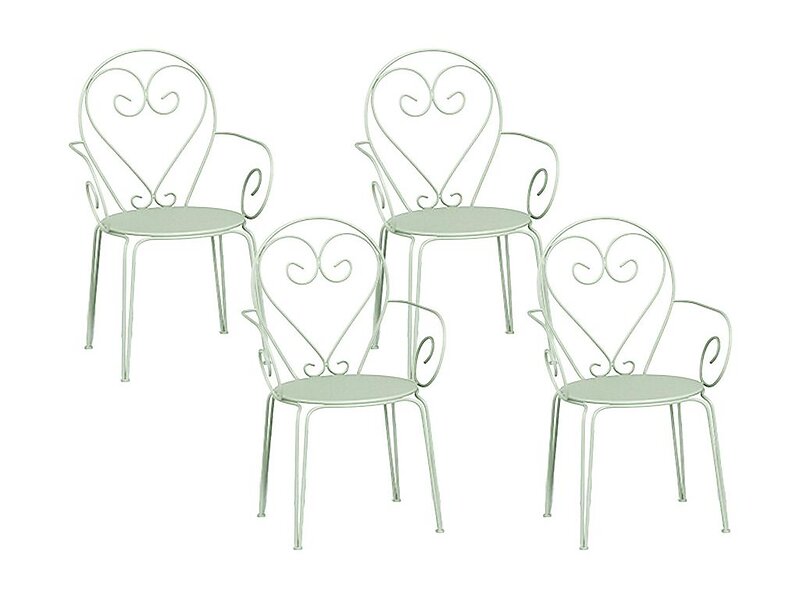 Mylia GUERMANTES Lot de 4 chaises de jardin empilables en métal façon fer forgé Vert amande
