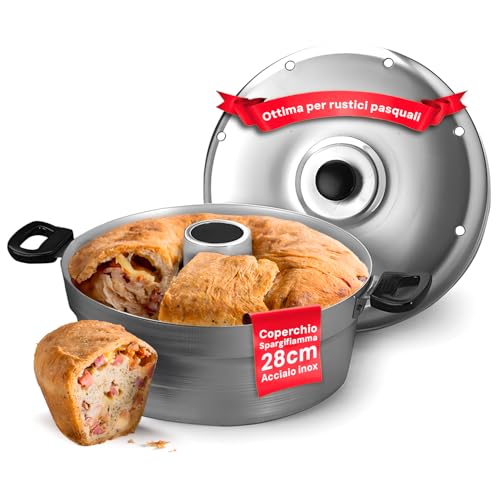 Avilia Poêle four à gaz avec couvercle et pare-flamme 28 cm – aluminium pur 99,5% et épaisseur de 1 mm – Poignée en fer galvanisé pour une prise sûre et confortable – Bouton en fer et plaque en acier