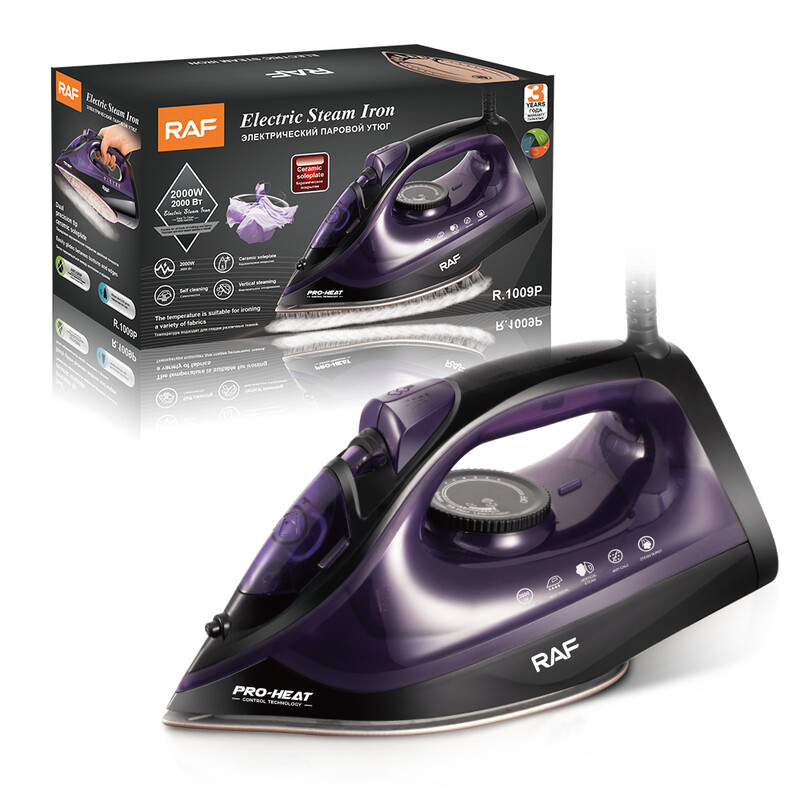 RAF Fer à repasser vapeur électrique 2000 W, semelle en céramique, fonction vapeur boost, fonction d’auto-nettoyage, vapeur verticale, réservoir d’eau de 210 ml, pour un usage domestique et professionnel
