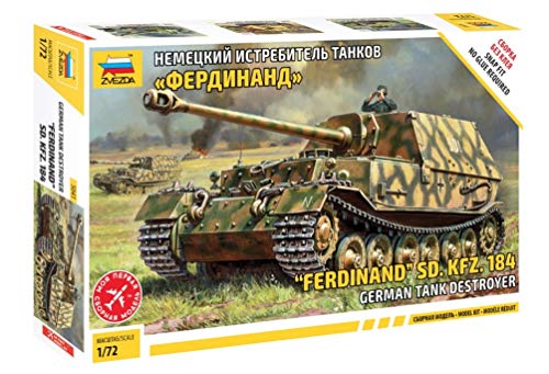 Zvezda 500785041 – 1:72 SD.Kfz.184 Ferdinand Tiger – Maquette de Construction en Plastique – Kit de Montage – pour débutants – Détaillé, Camouflage