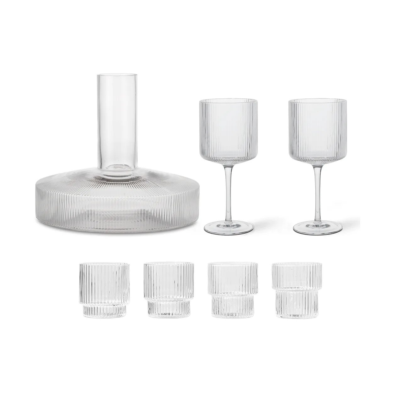 Ferm Living Carafe et verre Ripple 17 pièces - Clair