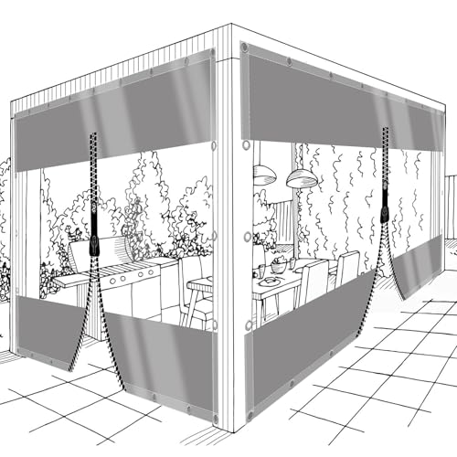 Ezcasch 2.5x3.5m Bâche Transparente Imperméable avec Fermeture éclair, 0.45mm Bache Transparente Exterieur, 450g/m² Bache Etanche au Pluie pour Pergola, Terrasse (Hauteur x Largeur, Gris)