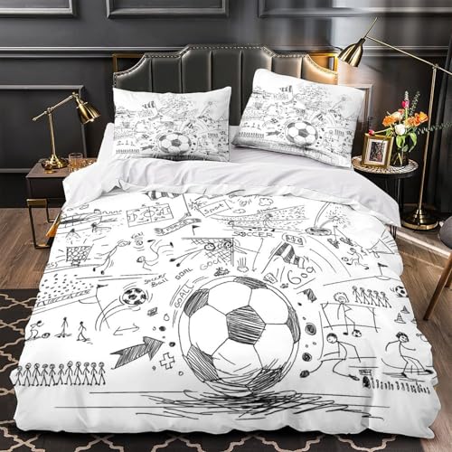 TBZXEEWOE Action du Ballon de Football Parure de Lit Imprimé en 3D Microfibre résistante Léger Housse de Couette Ultra Douce Fermeture Éclair Confortable for Couple Amoureux Single(135x200cm)