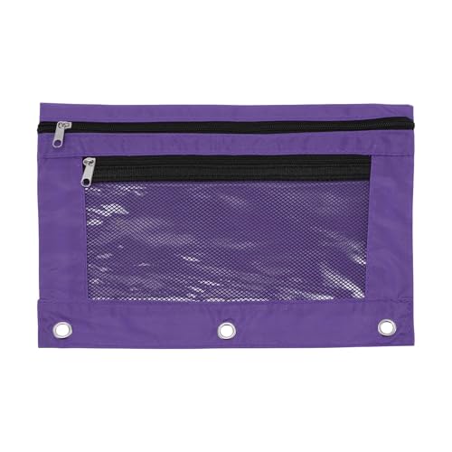 CAPASTEC Trousses pour 3 Anneaux Classeur, Double Couche, Fermeture Eclair Lisse, Fenetre Transparente en Maillage, Trousse pour Classeurs, Trousse avec 3 Renforts, Violet