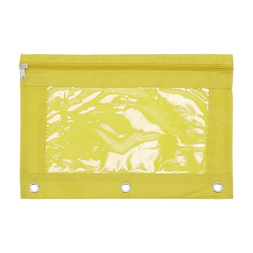 CAPASTEC Trousse pour 3 Anneaux Classeur, Double Couche, Fermeture Eclair Lisse, Fenetre Transparente, Trousse pour Classeurs, Sac A Crayons avec 3 Renforts, Jaune