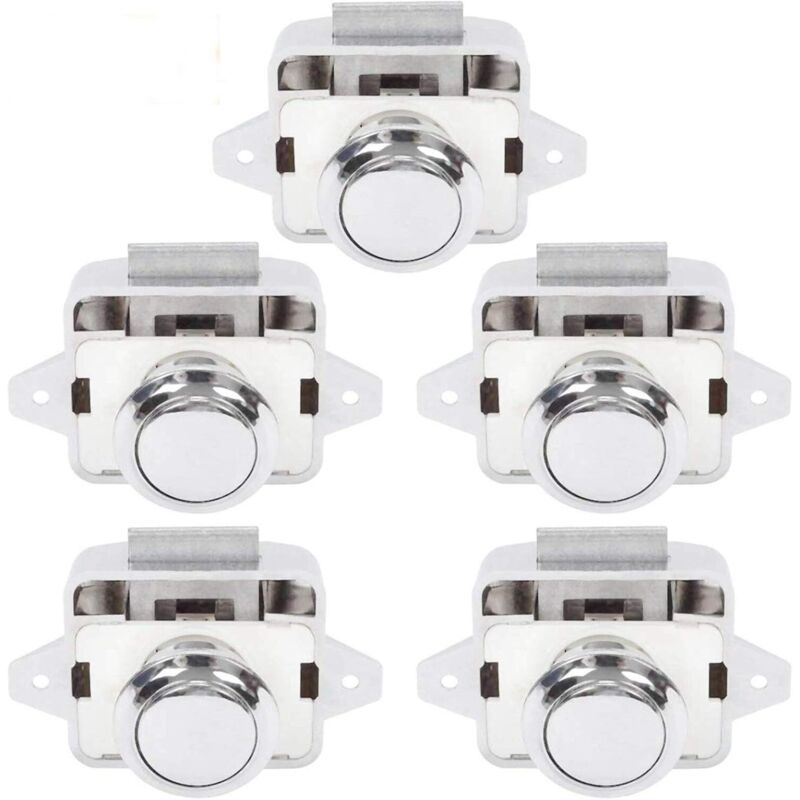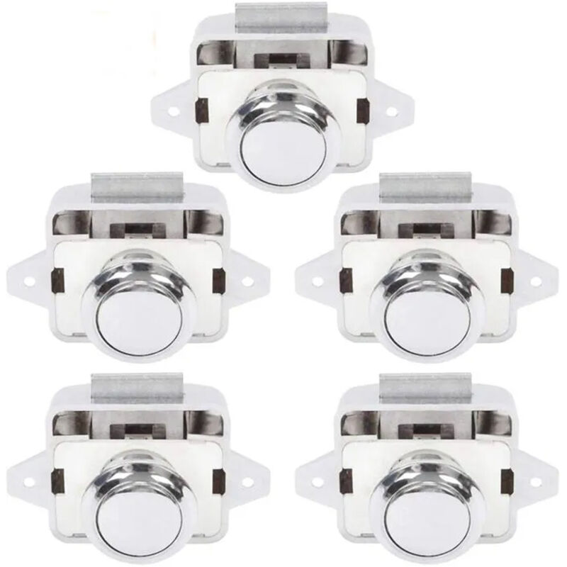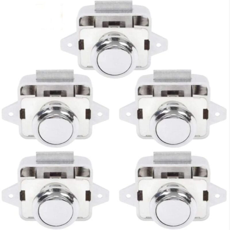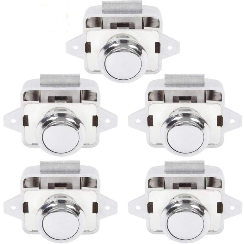 Bouton Poussoir Camping Car - Serrure Loquet Porte Fermeture Placard Bouton pour rv caravane de moteur 5 pièces Argent--