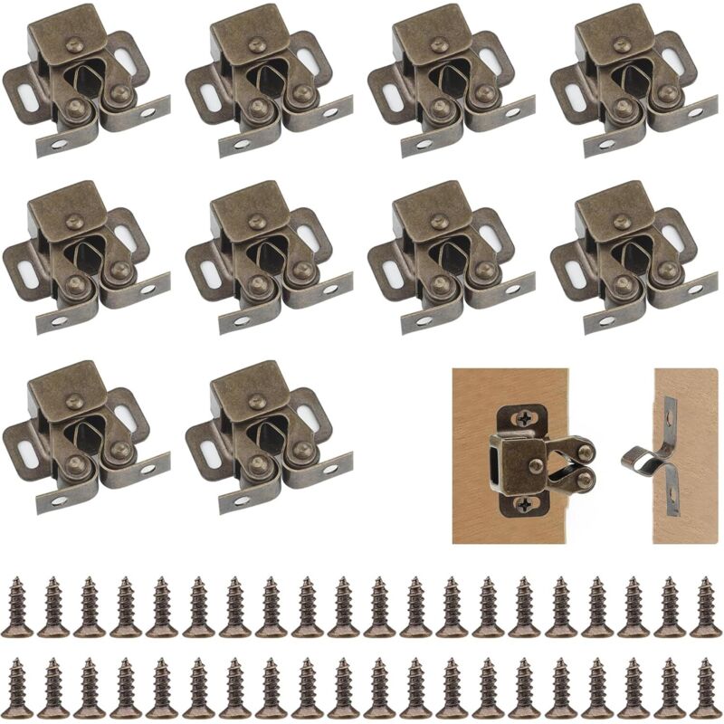 Loqueteaux de Meuble 10 Pièces Fermeture Porte Placard, Loqueteaux de Porte Placard Double Rouleau pour Placard bronze