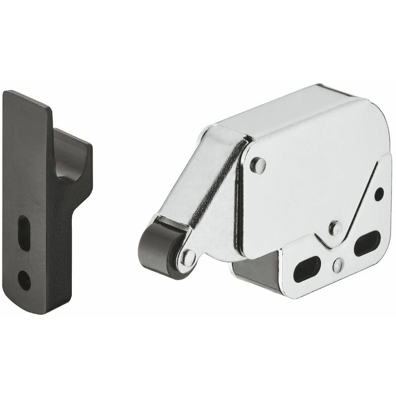 cyclingcolors Loqueteau noir acier à ressort automatique et rouleau avec contre pièce argent chromé loquet fermeture meuble porte placard cuisine salle de bain