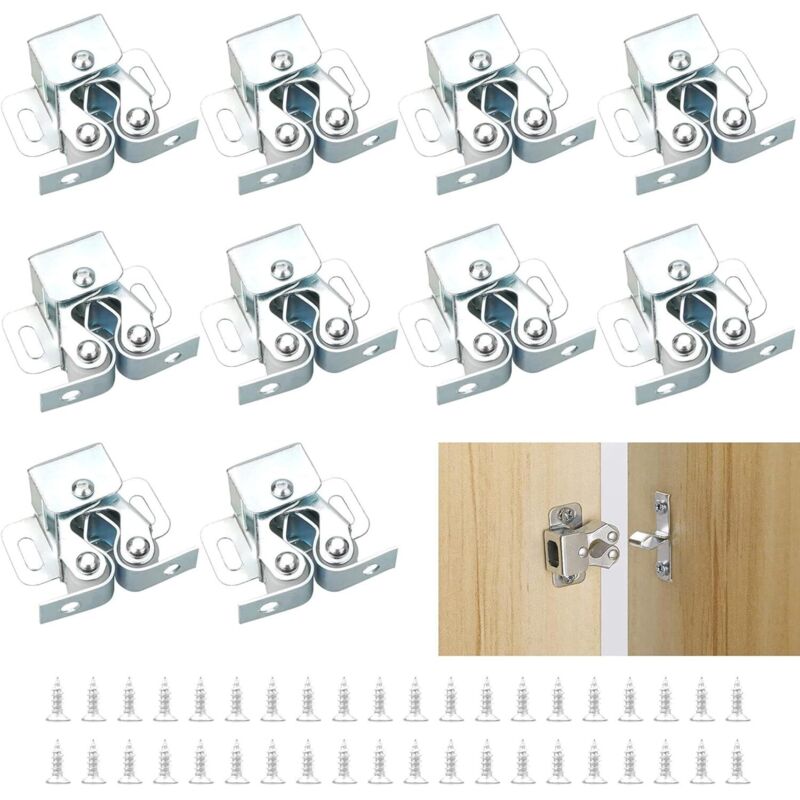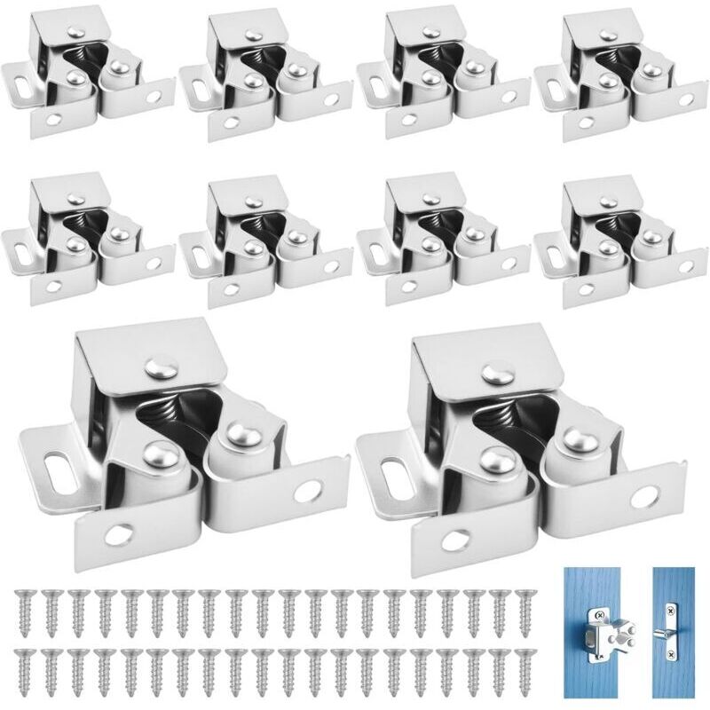 Zimoer Lot de 10 Loquets à Double Rouleau, Loqueteaux de Meuble, Fermeture Porte Placard, Loqueteaux de Porte Placard pour Armoire, Cuisine, Placard, Porte D'armoire et Loquets avec Vis, Argenté