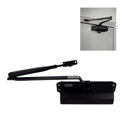 Amig - Ferme-porte pour fermeture automatique de porte de poids max 40 kg et largeur max 85 cm | Finition en aluminium noir mat | Empêche les accidents dus aux supports ou courants d'air | Vis