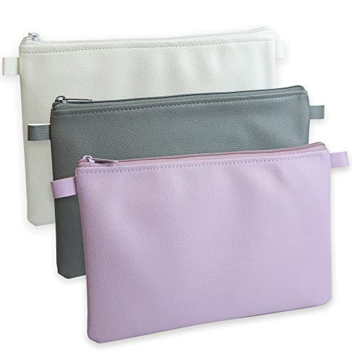 effektivo Lot de 3 porte-monnaie colorés, porte-monnaie, porte-monnaie, porte-monnaie, porte-documents, porte-documents, avec fermeture éclair, porte-stylos, trousse de maquillage, gris blanc, rose