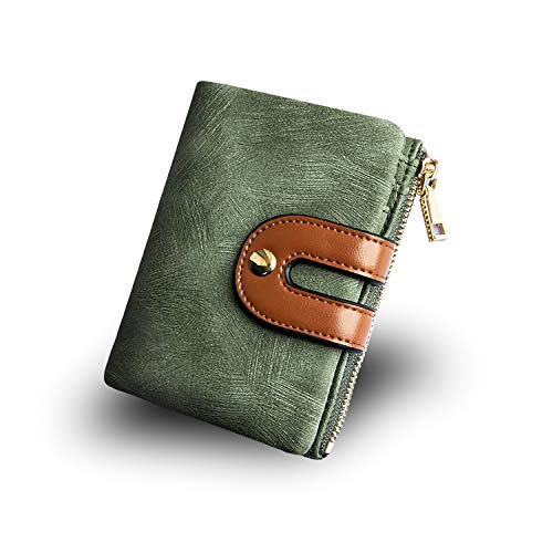 AOXONEL Petit Porte-Monnaie en Cuir RFID à Deux Volets pour Femme avec Fermeture éclair, Porte-Monnaie, Poche pour Carte d'identité, Fin, Compact, Vert, Small, Moderne