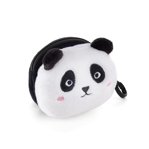 Back2Fun - Porte-Monnaie en Peluche, Taille 95 x 95 x 60 mm, Tirette en métal, Fermeture éclair, Porte-Monnaie avec Porte-clés, Matériau Polyester Effet Peluche, Détails brodés, Design Panda