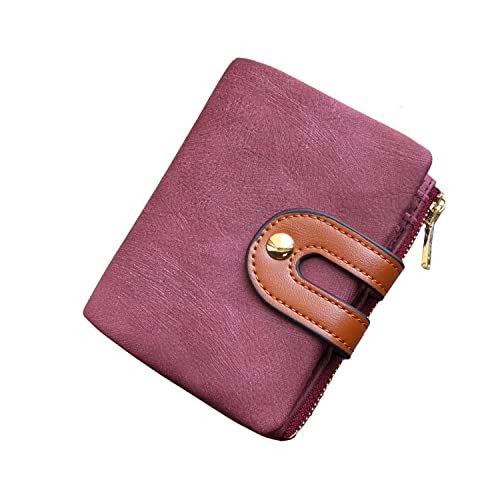 AOXONEL Petit Porte-Monnaie en Cuir RFID à Deux Volets pour Femme avec Fermeture éclair, Porte-Monnaie, Poche pour Carte d'identité, Fin, Compact, Violet, Small, Classique