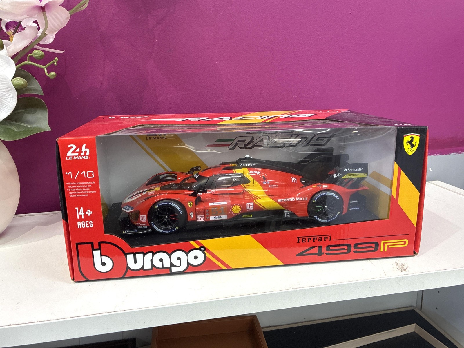 1:18 BURAGO Ferrari 499P #51 Le Mans 2024 Pier Guidi +Showcase BU16314-51-VET