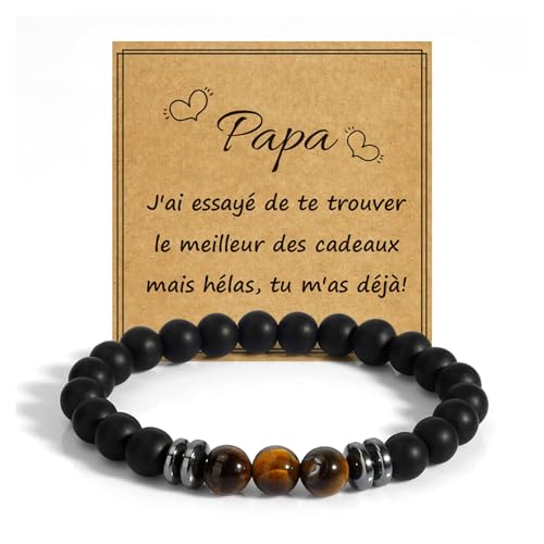 EmDryze Cadeau Paques Pour Papa Naturelle 8mm Bracelets Pour Papa Idee Cadeau Fete Des Peres Personnalisé Pierre Fête Des Pères Cadeaux Anniversaire Papa Merci Cadeaux Noel Saint Valentin Beau Pere