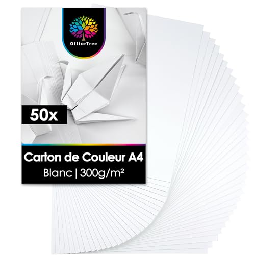 OfficeTree 50x Papier Cartonné Blanc A4 300g - Feuille Cartonnée A4 Blanc pour Bricolage, Découpe & Impression - Papier Carton - Papier 300g épais imprimable - Feuilles Cartonnées