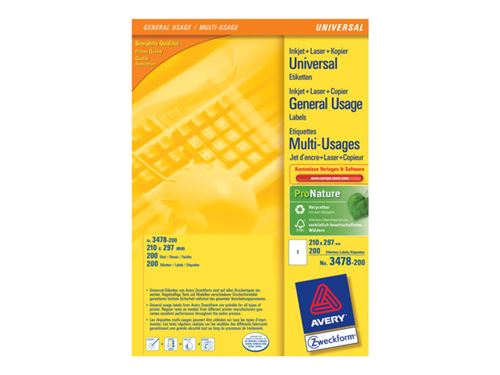 Avery Zweckform 3478 - Blanc - A4 (210 x 297 mm) 200 étiquette(s) (200 feuille(s) x 1 étiquettes