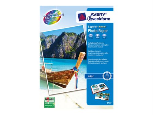 Avery Zweckform Superior Inkjet Photo Paper 2572 - Haute-brillance - blanc - A4 (210 x 297 mm) - 200 g/m² - 50 feuille(s) papier photo