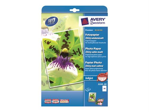 Avery Zweckform Premium Photo Paper 2559-20 - Mat - blanc - A4 (210 x 297 mm) - 250 g/m² - 20 feuille(s) papier photo