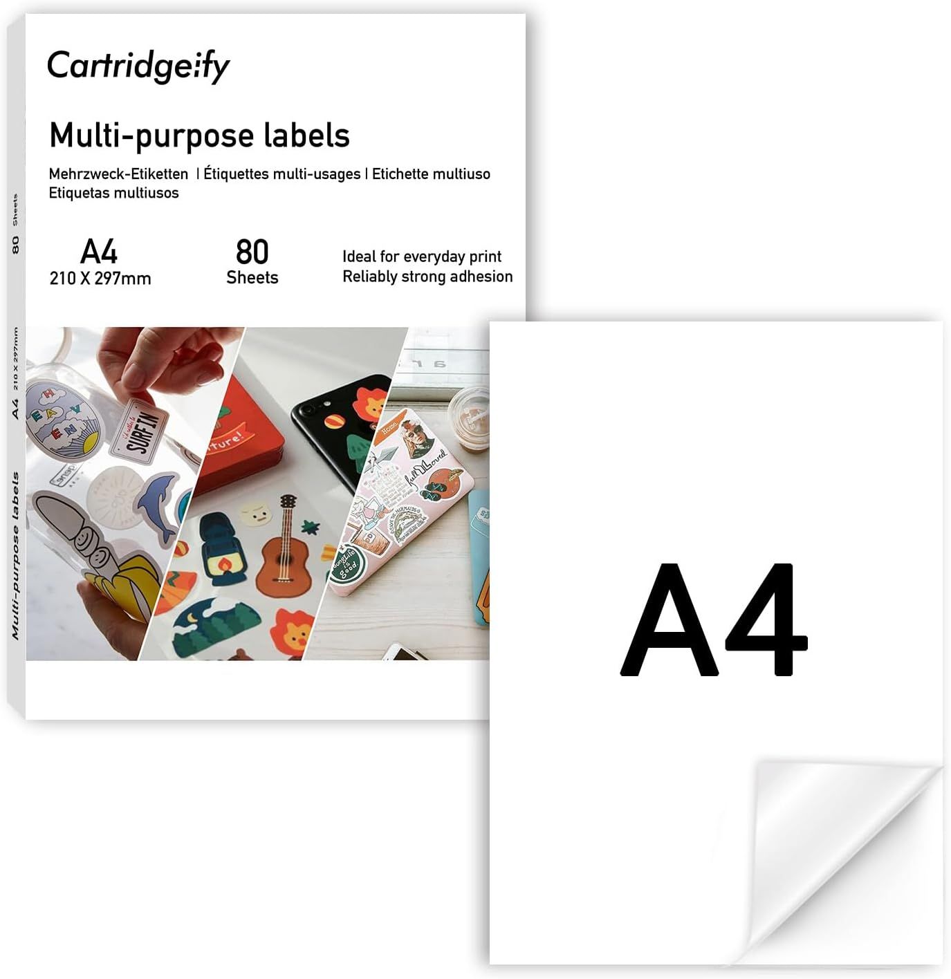 JEXNOVASHOP-A4 Papier Autocollant Imprimante pour imprimante laser et jet d'encre, 80/feuilles,1 étiquette par feuille, Blanche Mate, 210 x 297 mm