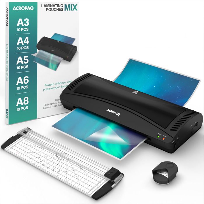 ACROPAQ Plastifieuse A3- Avec Coupe-papier 50 feuilles de plastification et Arrondisseur de coins- Plastification à chaud/froid