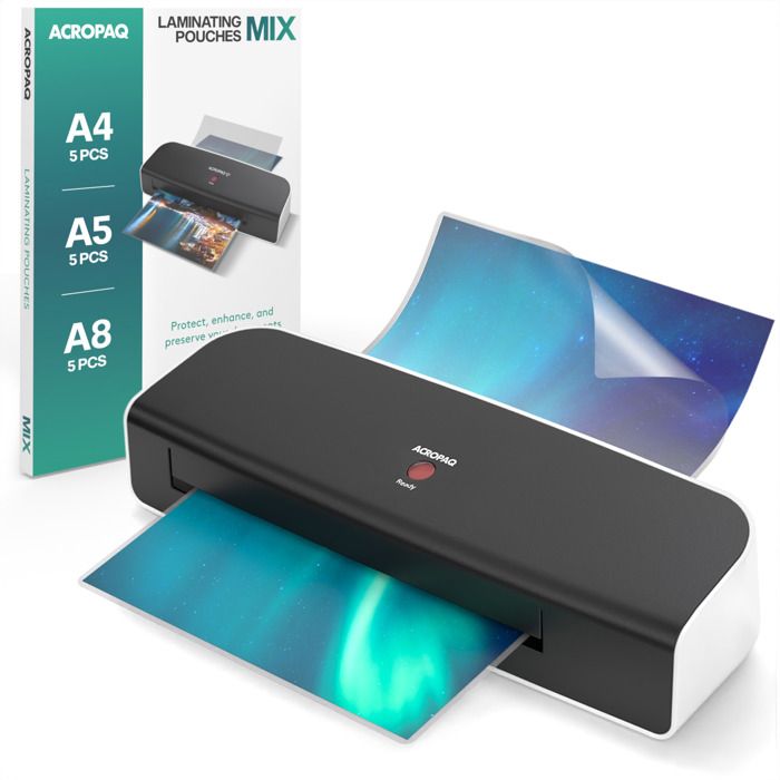 ACROPAQ Plastifieuse A3 A4 A5 avec 15 feuilles plastifieuses- Machine à plastifier- Avec bouton anti-bourrage