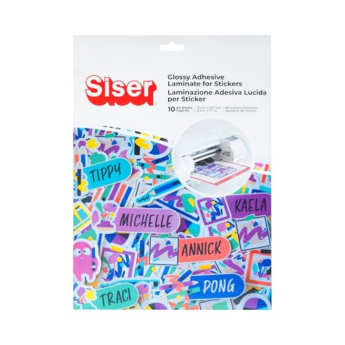 Film de plastification adhésif brillant Siser pour autocollants, format A4 (10 feuilles) –Anti-taches et imperméable,haute adhérence, sans plastifieuse requise, idéal pour autocollants et scrapbooking