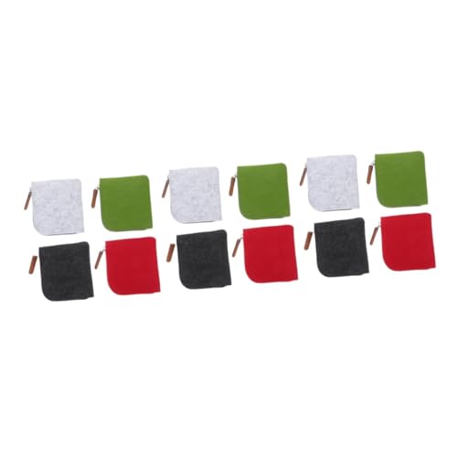 FOMIYES 12 pièces Pochette Zippée Feutre Épais pour Mini Porte à Eau Rangement Sécurisé pour Billets et Clés Couleurs Rouge Gris Vert Gris Foncé
