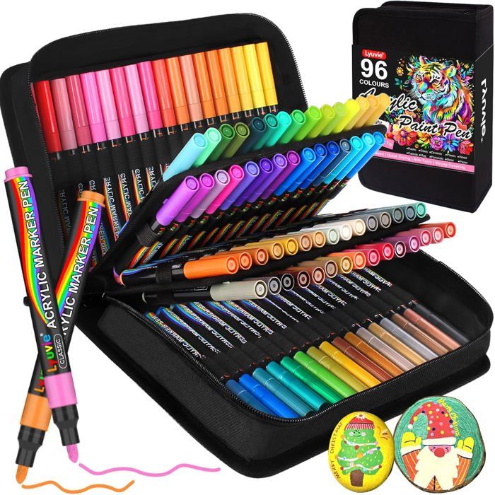 Feutre Acrylique96 Couleurs Marqueur Peinture Acrylique avec Pointe Moyenne 3mmAcrylic Paint Marker pour Peinture de Rochers