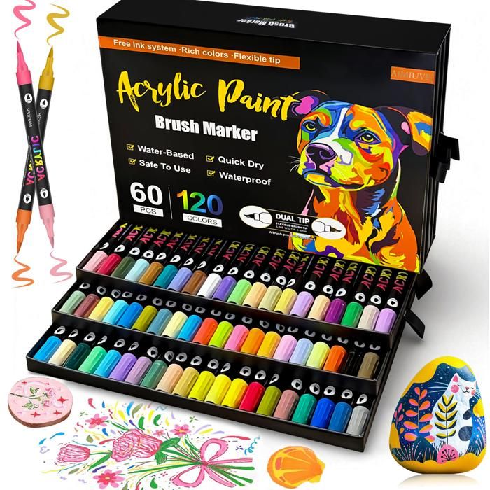 120 Couleurs 60 stylos Feutre AcryliqueFeutre Peinture Acrylique Double Pointe PinceauMarqueur Acrylique Pour PapierVerreGalet