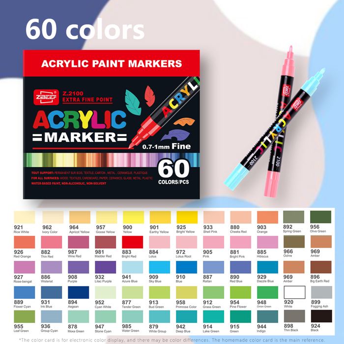 Feutre Acrylique 60 Couleurs Acrylic Paint Marker Double Pointe Stylos Marqueur Peinture pour Coloriage Verre Tissu Bois Pierre