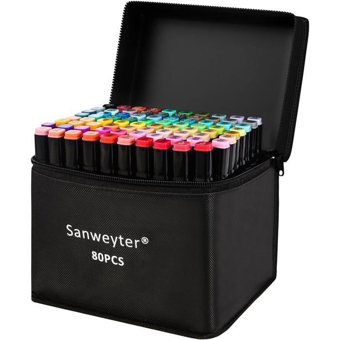 FLEUVE - Feutre Acrylique - 83 Couleurs Double Pointe Séchage Rapide Pochette – Marqueurs Alcool Pour Peinture et Animation