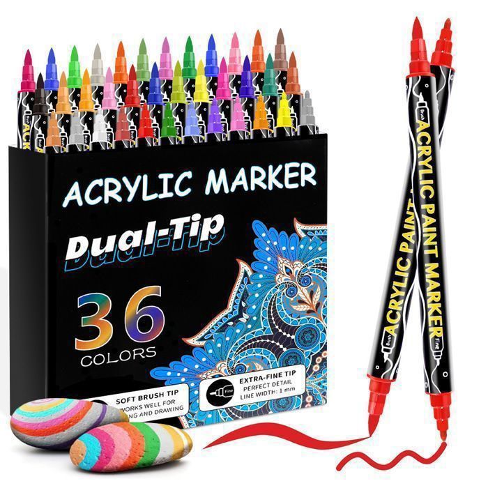 Feutre Acrylique 48 Couleurs Double Pointe Marker Stylo Marqueur Peinture Acrylique pour Bois Toile Pierre DIY Feutres Coloriage