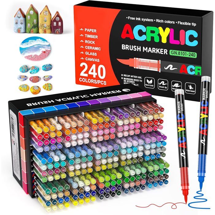 240 Couleurs Feutre Acrylique Marqueur Peinture Acrylique Pinceau Pour Papier Verre Galet Métal Plastique Bois Oeuf