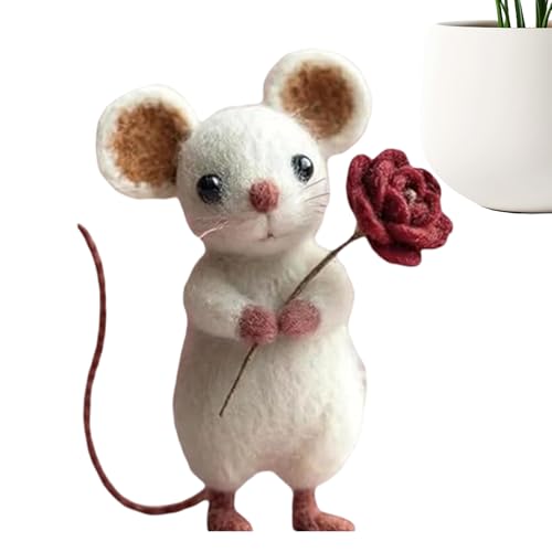 En Feutre De Laine - Sculpture Textile Faite À La Main, Figurine Miniature De Souris Feutrée, Ornement D’art En Fibre Romantique | Lui, Son Petit Ami, Petite Amie, Femme, Étagère, Table À Mange