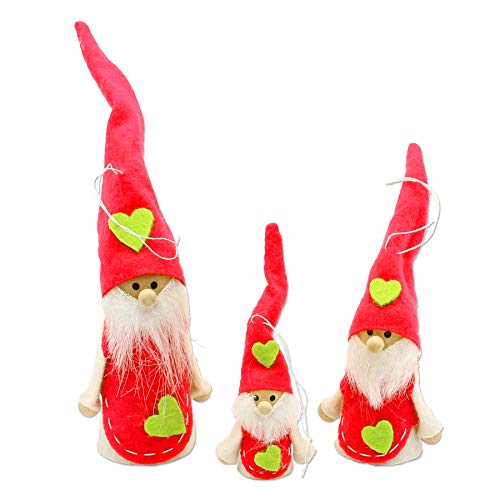 Dekohelden24 Lot de 3 Nains en Feutre/Textile comme décoration d'arbre/Pendentif en Rouge, de 10 à 21 cm.