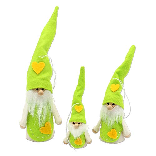 Dekohelden24 Lot de 3 Nains en Feutre/Textile comme décoration d'arbre/Pendentif en Vert, de 10 à 21 cm.