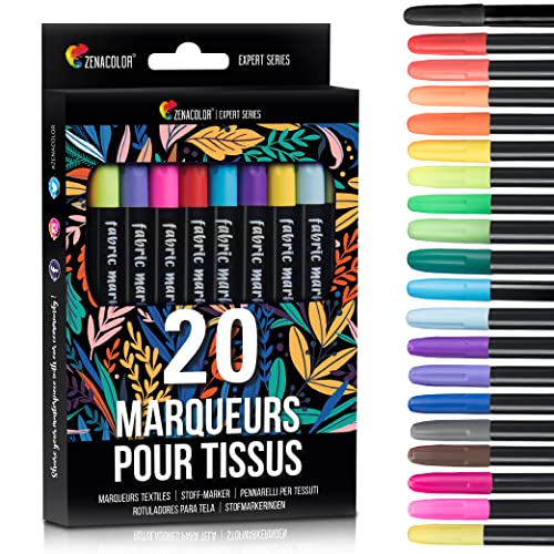 20 Marqueurs Textile et Tissu - Feutre Textile Non-Toxique, Indélébile et Permanent à Pointe Fine - Idéal pour T Shirt, Sac Tissu, Tote Bag Vierge et Autres Tissus - Pour Enfant et Adulte
