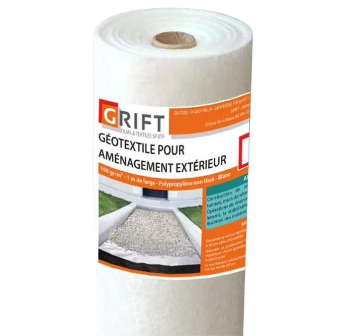 Géotextile - GRIFT - 1m x 20m - 100 gr/m² - Polyéthylène haute ténacité - Feutre textile