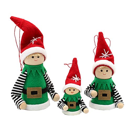 Dekohelden24 Lot de 3 lutins de Noël en Feutre/Textile - Décoration d'arbre de Noël - Taille Entre 5 et 12 cm.