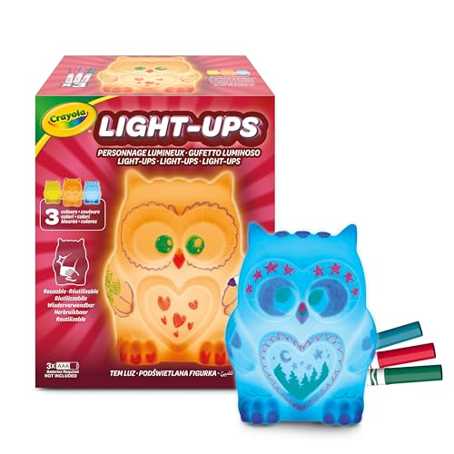 CRAYOLA Light Ups Hibou Lumineux, Personnage Recolorable avec Lumière, Décoration Chambre Enfant, Coffret Créatif avec 3 Feutres Lavables, Cadeau pour Enfants dès 4 Ans