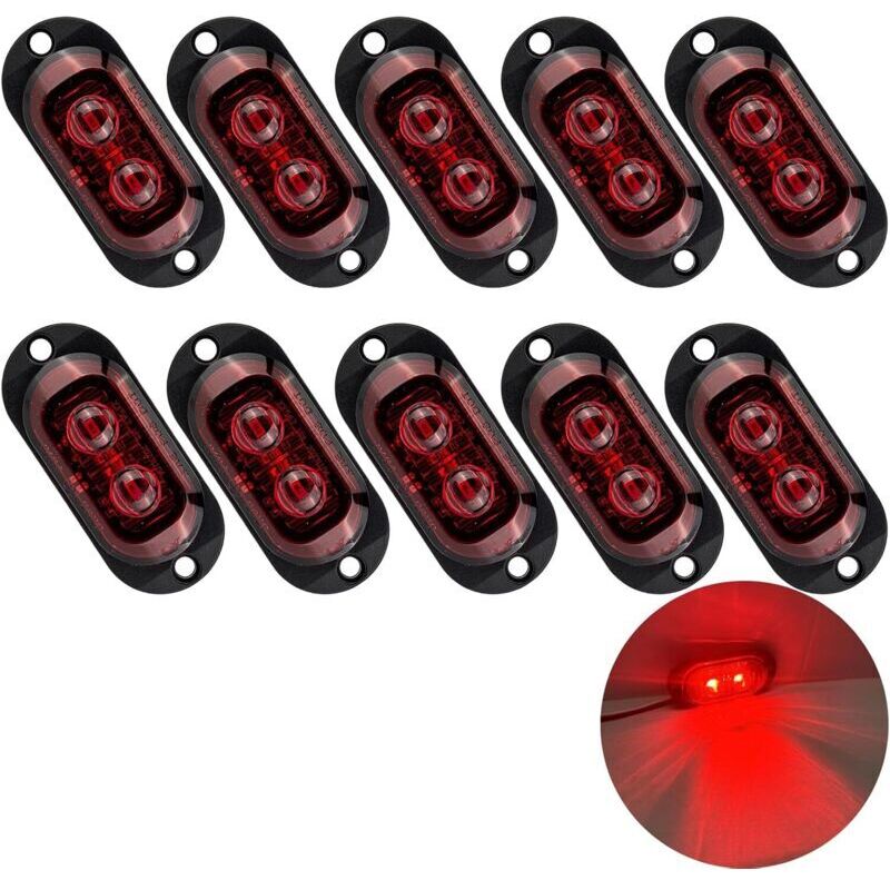 10X 2 led Feux de Marquage Latéral 12 / 24V Feux De Gabarit led Remorque Lampe 3000K LumièRe D'Avertissement Pour Camion Rv Caravane (Rouge) - Lntyq