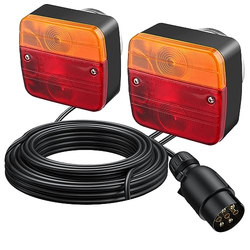 EYPINS Feux Arrière Remorque Magnétiques 2x Éclairage Homologué ECE 12V Câble 7,5m 7 Broches Étanche IP65 pour Voiture Camion Caravane Bateaux Camionnettes
