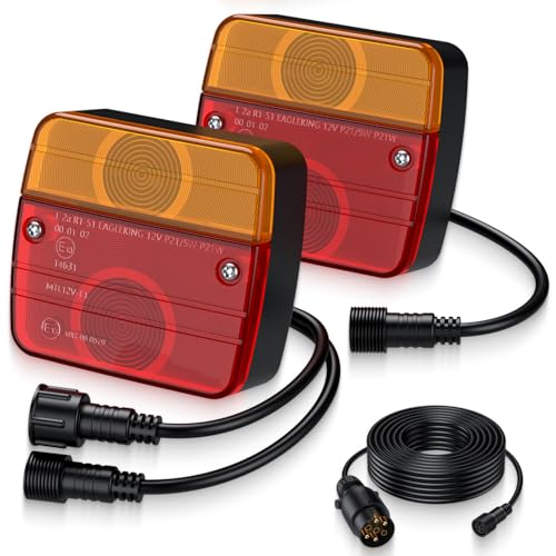 EYPINS Kit de 2 Feux Arrière pour Remorque 12V avec Câble 7.5m,Connecteur 7 Broches EU et Homologation ECE R1/E13,Installation par Vis Intégrées pour Voiture,Camionnette,Caravane