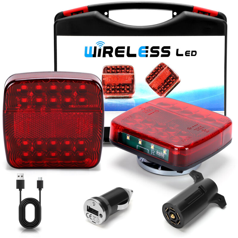 Eclairage arrière Feux Led sans fil WiFi pour remorque Inclus cablettes Antivol Fixations Magnétique Kit plaque feu